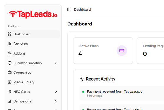 Other than that, as a TapLeads client, you do have access to our dashboard, which you log into from any browser.